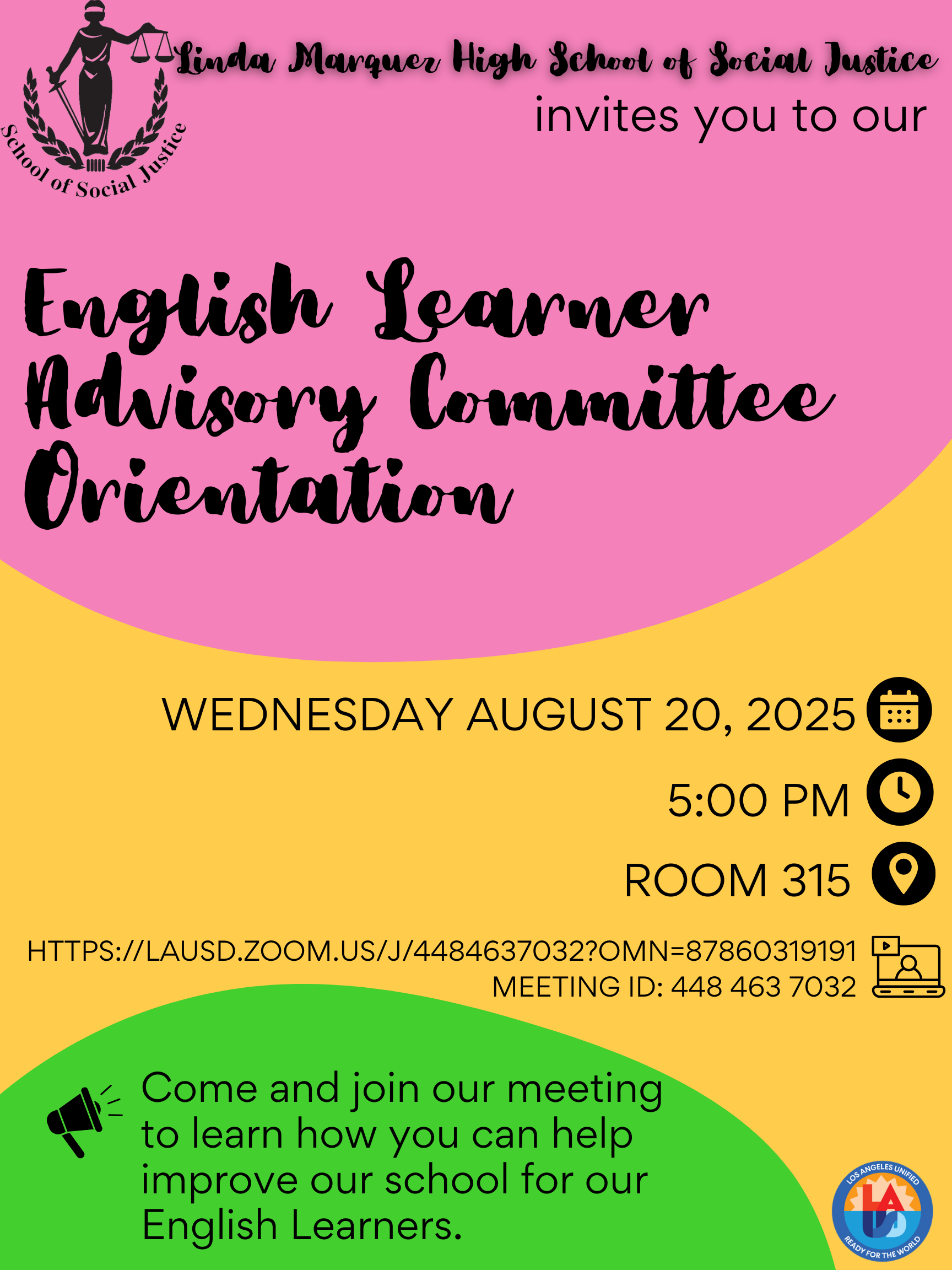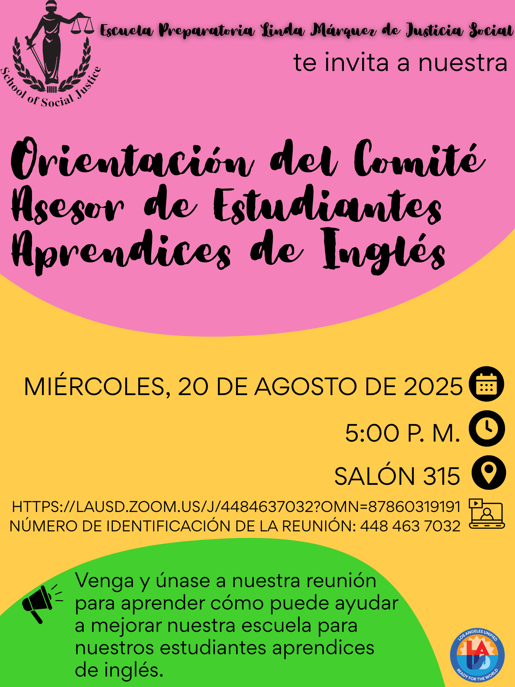 English Learner Advisory Committee Orientation/ Orientación del Comité Asesor de Estudiantes Aprendices de Inglés