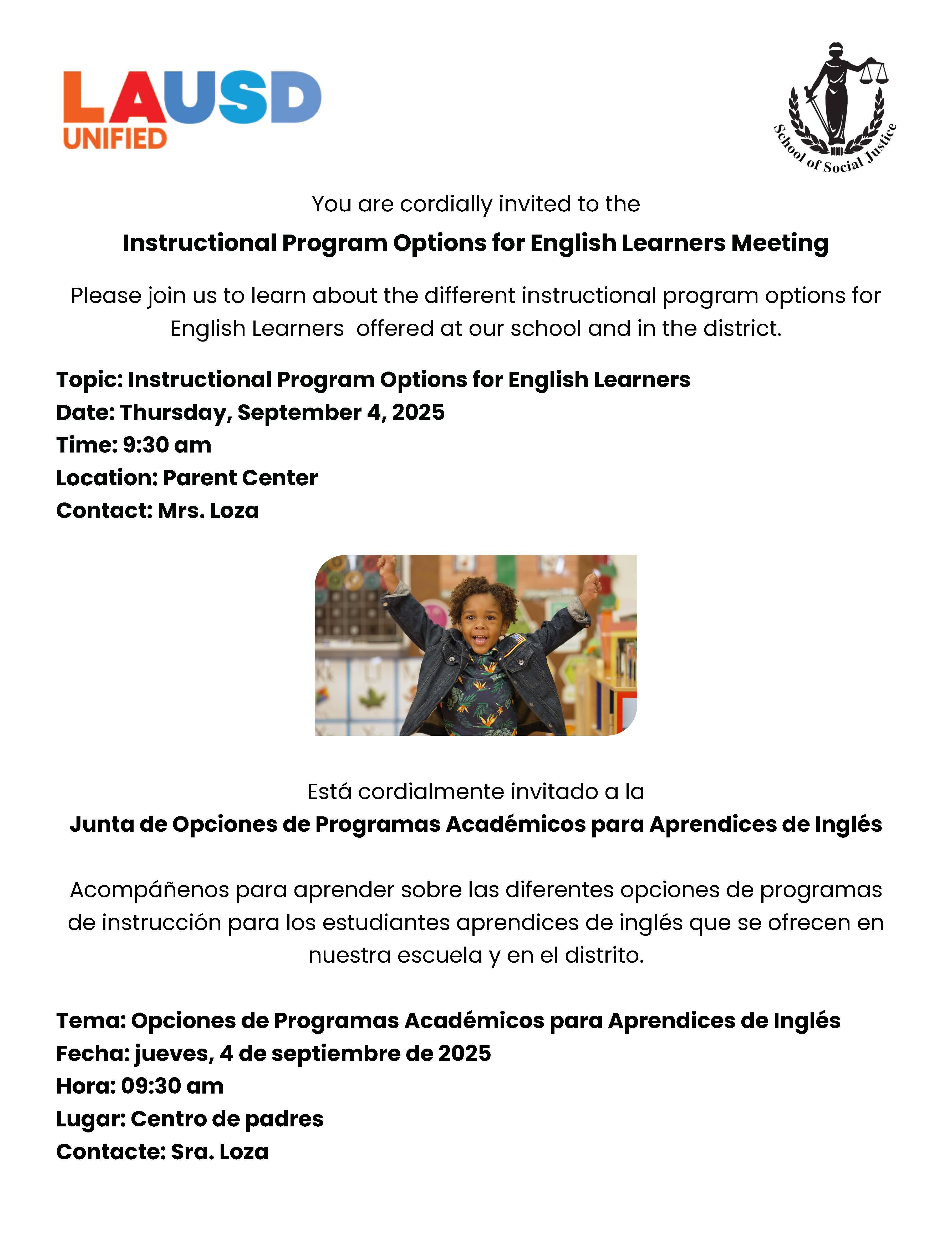 Instructional Program Options for English Learners Meeting /Junta de Opciones de Programas Académicos para Aprendices de Inglés