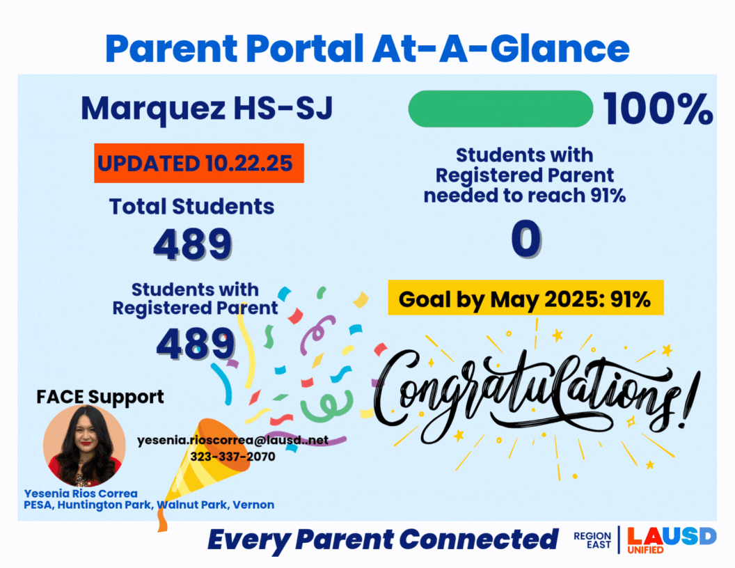 Marquez HS-Social Justice Achieves 100% Parent Portal Registration!
