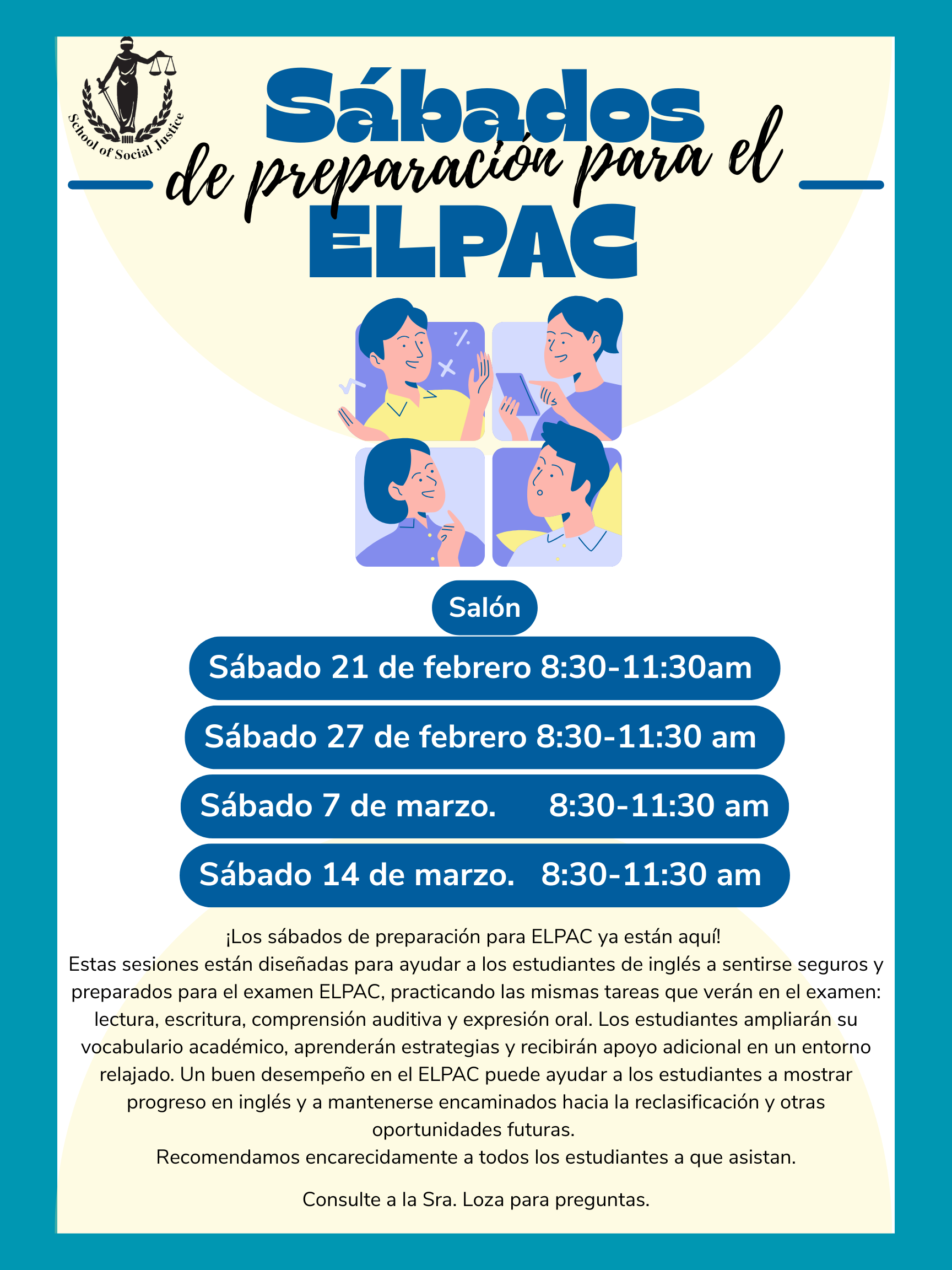 Important Announcement for EL families: ELPAC Prep Starts Saturday, Feb. 21 / Anuncio importante para familias de estudiantes aprendices de inglés: La preparación para el ELPAC comienza este sábado, 21 de febrero.